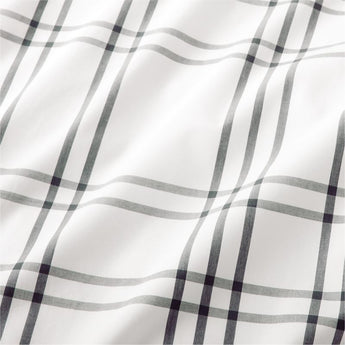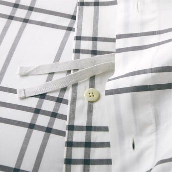 Sewn of pure organic cotton for superior comfort, beauty and strength, our Stax kids bedding adds a level of coziness that's hard to beat. Straight grey stripes crisscross over a bright white ground to form a grid pattern that keeps the bed looking neat, tidy and always in line. Pair the duvet cover with our Stax sham and sheets, all available in an array of mix-and-match colors. Get creative!