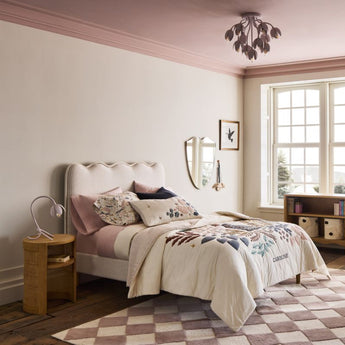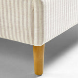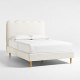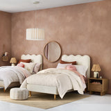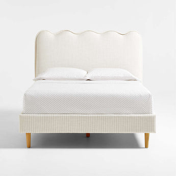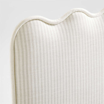 An on-trend, undulating design makes this wavy bed a must-have piece for chic kid's rooms. The padded upholstered headboard provides a comfy spot for lounging and reading, and the striped ivory and natural linen-blend fabric wraps the entire bed frame for complete softness. Matching oversized piping adds a playful touch.
