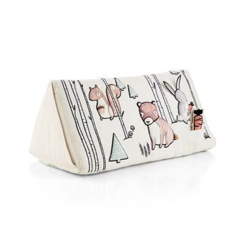 Take a little hike right at home in the nursery with our Woodland Animals Baby Tummy Time Toy. Made to keep babies active and stimulate their senses, this wonderful wilderness is full of surprises, including a mirror, squeaker and more. Plus, your mini adventurer will make some forest friends along the way. Designed by Kelli Murray, it has charming illustrated critters, including a bunny, bear, squirrel, deer and fox.