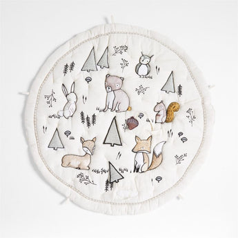 Our Woodland Animals Baby Activity Gym Play Mat lets little explorers visit a friendly forest without leaving the nursery. Squeakers and a mix of textures stimulate your baby's senses, while soft cotton construction makes sure this is one comfy playtime hike. Four animal-shaped rattles attach to the mat or hang from the removable padded bar to encourage babies to play and learn as they hit new milestones from tummy time to sitting independently.