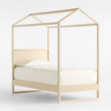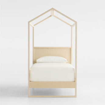 An imagination-sparking silhouette meets clean-lined style in our Gemini Tent Bed. Skillfully crafted to last in solid ash and poplar wood, this update to our classic Gemini design features a tent-inspired silhouette that brings big adventure energy to any kid's room. Subtle wire brushing highlights the beautiful wood grain, and a sun-washed finish keeps the look fresh and versatile. Create privacy by adding the matching canopy cover (sold separately), and complete the look with other pieces from our Gemini collection.