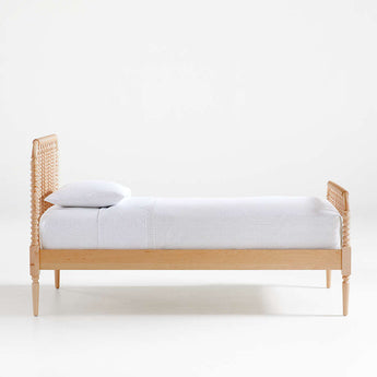 A bestseller for a reason, our Jenny Lind Maple Spindle Bed is a showstopper in any bedroom. The iconic collection, with its intricate wood turnings, has been made in the same location with the same classic design for more than 20 yearsbut its modern sensibility means it hasn't aged a day. Each spindle is made from a single piece of wood, then hand-sanded to capture every gorgeous detail. Fun fact: This forever classic is named for the 19th century opera singer Jenny Lind, who was the pop icon and influencer of her day.