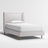 Curving gently, the shelter headboard of our Weston Grey Upholstered Bed offers a cozy haven for kids. The padded, upholstered headboard provides a comfy spot for lounging and reading, and the tweedy pale grey fabric wraps the entire bed frame for complete softness. Tapered solid wood legs add a bit of a lift plus a touch of natural warmth. This cool, modern design will grow with little ones through each stage.