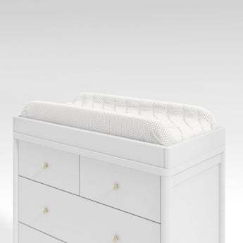Swiftly convert your dresser into a changing table with our modern, clean-lined topper. The white changing table topper's finish works best with our white dressers, and the necessary hardware to secure the two pieces together is included with purchase. As soon as baby outgrows diapers, you can simply detach this smartly designed topper and continue using the dresser for years to come. Changing pad sold separately.