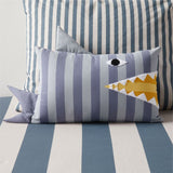 Decorate the nursery or kid's room for your little animal lover with our playful striped shark pillow. Made of sturdy yet smooth cotton canvas, the pillow features crewel embroidery details for added texture. With a fiercely fun expression and 3D fins, the unique design will add individuality to any budding zoologist's space.