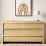 Kids Raya 58" Natural Oak Wood Wide 6-Drawer Dresser