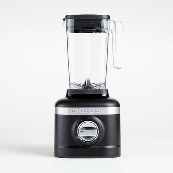 Equipped with a uniquely asymmetrical stainless steel blade and powerful motor, this modern matte black blender crushes ice in less than 10 seconds and gets impeccably smooth results out of even the toughest ingredients. The ingenious Soft Start feature prevents splatters by starting the motor gently, pulling ingredients into the blade and gradually increasing speed to the desired setting. Intelligent motor control senses the pitcher's contents, maintaining the ideal speed to power through them effectively. Two lidded personal blender jars store sauces in the refrigerator and take smoothies on the go.