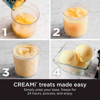 The Ninja® CREAMi® transforms solid frozen bases into ice cream, sorbets, milkshakes, and more at the touch of a button. Ninja’s Creamify® technology allows the CREAMi® to break down a uniformly frozen block into an incredibly smooth and creamy texture in minutes. From healthy options to indulgent treats, the Ninja® CREAMi® can create frozen desserts as unique as you are!