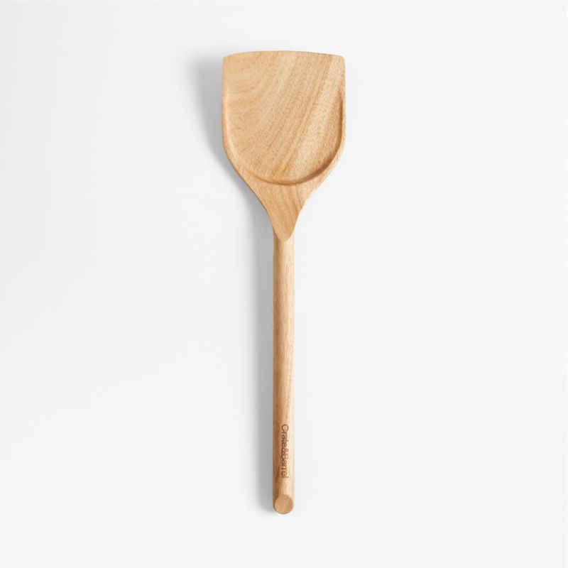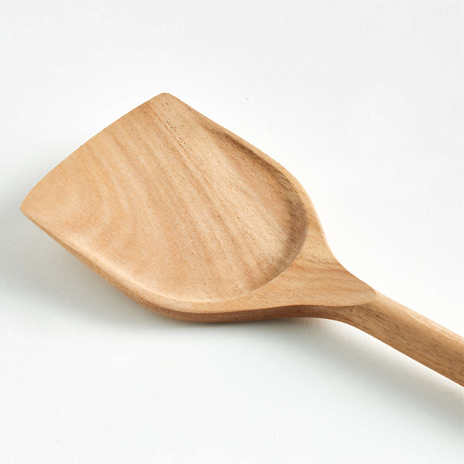 Scoop, scrape and flip with our signature acacia wood wok spatula. Crafted with a subtle concavity, the multifunctional utensil ably handles stir frying and just about any other cooking task. Sustainable acacia shapes a modern organic tool with a warm, classic look and a cylindrical handle for a sturdy grip. We love the way the refined beveled edge finishes the elongated handle with a dynamic detail. Combine the wok turner with the other exquisitely proportioned utensils in our exclusive Crate & Barrel collection for a well-outfitted workspace that's up to any cooking challenge.