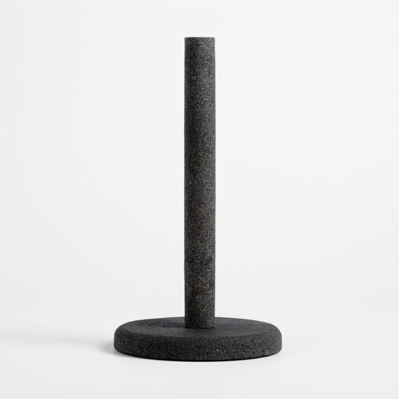 This sculptural paper towel holder crafted of lava stone elevates a kitchen essential into a display-worthy statement piece. The dark grey rod keeps a roll upright and at the ready, and the weighted base prevents the holder from tipping over as you unroll and rip. We love the modern design language the exaggerated curves bring to the countertop.