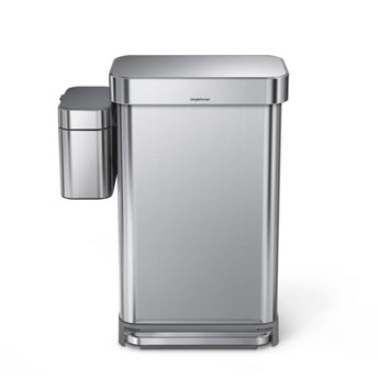 This modern compost container holds your organic waste in sleek style. Constructed of stainless steel with a fingerprint-proof, antimicrobial coating, the composter holds your scraps while the soft-seal lid lets them breathe to reduce odors. The green inner caddy removes and cleans up easily, while the pack of 30 compostable liners make taking out the (organic) trash a breeze. Keep the bin on your countertop, or use the included magnetic dock to attach it to the side of your simplehuman trash can (sold separately