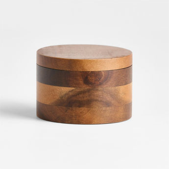 Beautiful acacia wood exhibits its rich grain in a natural salt cellar with a convenient and charming swivel lid. Use one to present your favorite sea salt, or group a few to serve red pepper flakes and dried herbs. Our exclusive acacia salt cellar pairs beautifully with our other acacia wood serving and entertaining pieces.