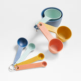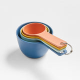 Measuring cups in a rainbow of hues nest together, brightening up baking and cooking projects with sunny cheer. Crafted of bamboo fiber and melamine in mint, powder blue, salmon and mustard, our colorful measuring cup set is durable and dishwasher-safe. Combine with the other vibrant pieces in our exclusive Aubin collection for a playful and practical kitchen.