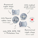 - Pacifier SilkySoft™ nipple is made from 100% medical grade silicone