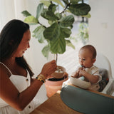 Dress for dinner. This silicone baby bib keeps the littlest gourmandsand your furniture and floorclean and dry as they master their dining skills. Made of food-grade silicone that resists stains and repels liquids, the stylishly simple bib curves into a deep pocket that catches crumbs, spills and more. The modern bib in creamy tan fits snugly thanks to adjustable neck fasteners and cleans up easily with a quick wash after snack time and meals.