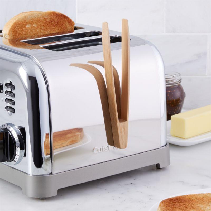 Made of naturally stain- and heat-resistant bamboo, these tongs safely remove toast from toasters and come in handy for serving. An integrated magnet lets the tongs hang at the ready on metal toasters, toaster ovens, and other surfaces.
