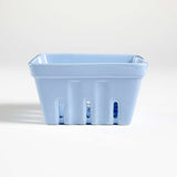 The classic farmers market berry box is reimagined in porcelain as a charming, functional kitchen accent. Fill the whimsical blue piece with fresh strawberries, blueberries and raspberries for a sweet addition to the breakfast table. A Crate and Barrel exclusive, the berry basket is glazed in powder blue and doubles as a colander for rinsing and straining berries.