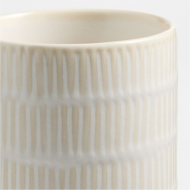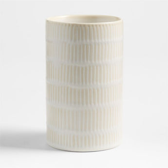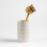 Our new Clean by Crate collection elevates essential tasks and tools to help keep your home beautifully clean. Crafted with recycled stoneware, this brush holder keeps our cleaning brushes right at hand so they're easy to grab for minor messes and serious scrubbing. Hand-glazed in matte ivory to highlight the linear texture, this canister instantly upgrades your sinkside supplies. Pair with the coordinating ceramic Clean by Crate pieces that all boast the same effortless balance of utility and modern aesthetics.