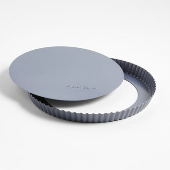 Super durable, lighter than cast iron and oh, that gorgeous unexpected slate blue. Ideal for sweet and savory tarts, quiches, pies and cakes, our slate blue tart pan is part of our bakeware collection that takes its cue from professional kitchens. Made of carbon steelan alloy of 99% iron and 1% carbon that's nearly indestructiblethe heavy-gauge pan heats quickly and evenly for consistent baking and perfect browning. The removable bottom allows for quick cooling, easy serving and an attractive presentation, and a double layer of silicone-based non-stick coating ensures easy release and quick cleanup. Pair with our other exclusive slate blue pans to build a versatile baking collection that's ready for any recipe.