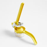 Squeeze with ease. Our signature citrus squeezer in sunny yellow gets the most out of lemons and limes so you have plenty of juice for cocktails, salad dressings, marinades and baked goods. The ergonomic handles and dual-gear squeezing mechanism increase your pressing power for low-effort juicing, and the built-in strainer filters out pulp and seeds. Squeeze directly into the removable measuring cup to minimize mess.