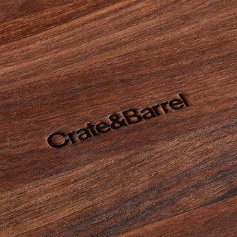 The intentionally simple designs of our signature Crate & Barrel cutting boards keep all the attention on the beauty of wood. Crafted of lengths of walnut, this face-grain board showcases the wood's deep, rich hue and fine, smooth grain. Use the grooved side to collect juices and crumbs as you cut, or flip the board over to serve cheese, charcuterie or appetizers. Modern yet timeless, our exclusive board offers versatility, classic good looks and a natural durability that stands up easily to everyday cutting and chopping. Each of our walnut face-grain walnut cutting boards is beautifully unique.