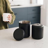 But that’s not all. By twisting the lid of the Fellow Atmos, the air inside is expelled, allowing the coffee to stay fresh up to 50% longer. To open the container, simply press the button in the center of the lid.