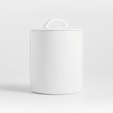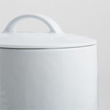 Contemporary porcelain whiteware represents a fusion of refinement and rusticity. Our large white porcelain canister takes on organic overtones with a finely "hammered" surface that ripples the light. A slim handle offers easy access to flour or sugar, while a silicone gasket provides an airtight seal. Smooth enough to not harm shelves or countertops, the unglazed bottom surface gives each piece an artisanal look. Together with its small and medium counterparts, the large canister coordinates with our exclusive Mercer dinnerware collection.