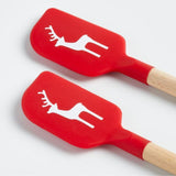 Snow-white silhouettes of reindeer on cheery red adorn the mini spatulas in this whimsical and wintry set. The heat-resistant silicone heads make it easy to scrape bowls of sticky batter and stir up pans of homemade cranberry sauce, peppermint cocoa and eggnog pudding. We love the way the refined beveled edges finish the wooden handles with dynamic detail, coordinating with our signature kitchen utensils. These two mini holiday spatulas make a sweet and useful gift, whether stuffed in a Christmas stocking or tied atop a wrapped present.