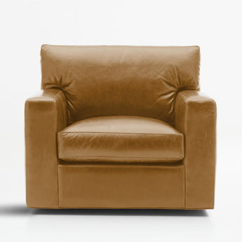 The quality and comfort of our Axis collection is legendary. Casual and inviting, the swivel chair offers exceptional, long-lasting durability. An angled back and deep seat cushion filled with a plush feather-down blend encourage lounging, while track arms give the chair the clean look and modern style that make Axis a Crate & Barrel icon.