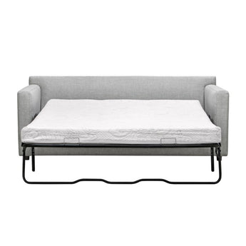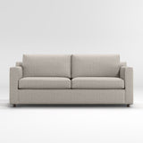 Barrett makes modern affordable and carefree. Upright yet comfortable, this versatile collection looks casual and clean in a contemporary fabric that feels great to the touch and is so durable you don't need to worry about spills or pets. This comfy queen sleeper sofa features a comfortable mattress and a locking tilt-up headrest for reading and media viewing. Designed to always look its best, even in high-traffic family rooms, the queen sleeper sofa dresses up or down to suit your space. The Barrett II Queen Sleeper Sofa is a Crate & Barrel exclusive.