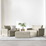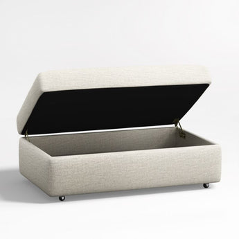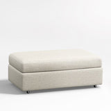 There's a reason it's called Lounge. This storage ottoman, part of our ultimate family room collection, serves as comfortable extra seating for guests or in front of a sectional or sofa as a tray table or footrest. Made for family life, the ottoman is a perfect addition to movie nights or binge-watching your favorite series on TV. The Lounge Storage Ottoman is a Crate and Barrel exclusive.