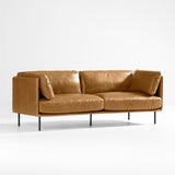 Indulge in the sumptuous leather surround of our Wells sofa. An updated version of the classic leather sofa, Wells looks rustic and modern as it tucks cushions onto a slim frame supported by iron legs. The beautiful full-grain, full-aniline leather offers a smooth sheen and lustrous look, tailored with topstitching and French seams. Carefully selected for its fine quality and distinctive markings, the leather will develop an even richer patina over time.