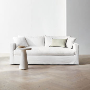 Willow's more modern lines relax in cottage style, instantly putting family and casual living rooms in a vacation state of mind. A welcoming retreat, the roomy sofa beckons with a deep seat, pillowy back cushions and the laid-back cool of washed cotton slipcovers. Tailored with a fitted look, the slipcovers keep the look casual yet neat, made of easy-to-clean, stain-resistant cotton. The Willow slipcovered sofa is a Crate & Barrel exclusive.