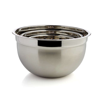 Timeless, all-purpose kitchen workhorses in durable stainless feature a dual finish contrasting matte exteriors with polished interiors. Dishwasher-safe bowls have flat bases to provide balance and stability for prep, mixing and serving.