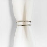 A simple, organic shape entwines silver bands with a soft, lustrous finish to form a beautiful napkin ring for elegant table settings and special occasions. Made of stainless steel with a silver finish, the two-ring design looks elegant with formal dinnerware and adds sparkle to casual linen and cotton napkins for everyday meals. We love the hint of glimmer with all-white or monochromatic place settings. Napkin rings can secure napkins in a range of folded designs, from the simple roll to the fan fold or double candle fan fold.
