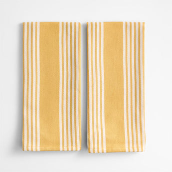 Simple kitchen essentials in organic cotton are striped thick and thin in bright white on vibrant colors or classic neutrals. Soft-washed for extra absorbency, these two dish towels only get softer with use and laundering. The inverse of our classic Cuisine stripe textiles, the towels pair perfectly with those for a coordinated kitchen.