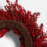 Countless ruby-like red berries animate our faux wreath with vibrant color and energy. Just as the petite berries provide an unexpected pop of color in the snowy winter landscape, our lifelike wreath invigorates your seasonal decor hung on an inside door or above a fireplace mantel. Our artificial red berry wreath is a Crate & Barrel exclusive.