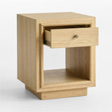 The understated elegance of our Hastings nightstand lets the beauty of natural oak shine. Set on a recessed plinth base, the rectangular nightstand is simply framed with rounded and crisply mitered molding that keeps the eye trained on the wood's straight-yet-pronounced grain and rich coloration. The nightstand is the perfect size for smaller bedrooms while still offering plenty of storage with a drawer and open shelf.