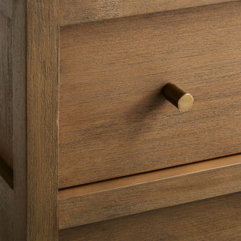 - Metal pulls with brass finish