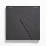 Our brushed black frame adds dark drama to photo and print displays with shadow-box styling and generous off-white mat. This square frame centers a vertical 4"x6" photos in a wide-margin mat for an elevated, gallery-like look. A Crate & Barrel exclusive, our aluminum frame with brushed black finish can be displayed on the wall, mantel or bookshelf.