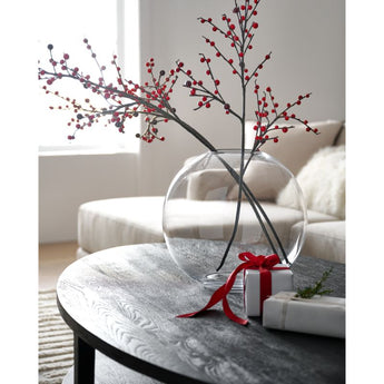 Ruby-red berries shine like jewels on this faux branch. Our red berry stem adorned with scarlet spheres adds vibrant color to arrangements of other wintry faux botanicals. Or create a more modern and minimalist look by placing a single stem in a tall clear or white vase.