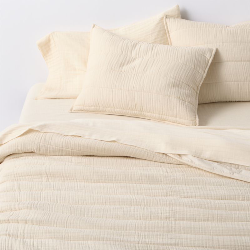Like sleeping in a cozy cloud. Our gauzy Supersoft bedding is irresistibly soft and airy. The double-layer weaving technique creates pockets of air to create compelling coziness, while the open weave ensures breathability. Our undyed sheet set showcases the raw, authentic appeal of organic cotton. The fiber's subtle range of naturally beautiful hues transforms your bedroom into a sanctuary with serene simplicity. Layer with other bedding from our Supersoft collection to make the bed with a laid-back, breezy look.