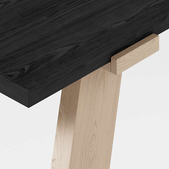 With plenty of space to spread out, Madison makes easy work of office, craft or art projects. The trestle table angles its bold legs into an A-frame with hidden stretcher bars to open up the design and extended-lip crossbars to make a firm grip on the expansive top. Made of pine and pine veneer, the work table contrasts its ebonized black top with a bleached frame, both heavily wirebrushed to play up the wood's dynamic grain. Versatile enough to stand in as a dining table, Madison is a Crate & Barrel exclusive.