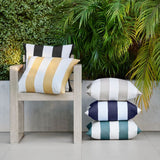 Bold, beach-inspired stripes band in white and navy on this graphic outdoor pillow. Designed to coordinate with solid and print options, this outdoor pillow adds standout style and plush comfort to patio furniture. Square pillow is covered in weather- and fade-resistant Sunbrella fabric to keep the look clean and bright.