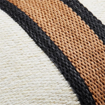 Our Lazio pillow uses a kilim weave-a tight interweaving of warp and weft strands often used to make carpets-to produce a flat surface with heathered color and rustic texture. The off-white pillow features a center tan band bordered with black stripes for a look that's modern and graphic. Our lumbar throw pillow includes your choice of a plush feather-down or lofty down-alternative insert.