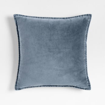 Elevated yet low-key, refined but relaxed. Our exclusive pillow cover collection reimagines velvet for everyday luxury-casual, comfortable and chic. The washed finish has a modern matte look, while the dyeing process creates subtle variations in the solid sea blue hue. Softly finished with flange tailoring, the organic cotton pillow looks right year-round tossed on your sofa, armchair or bed.