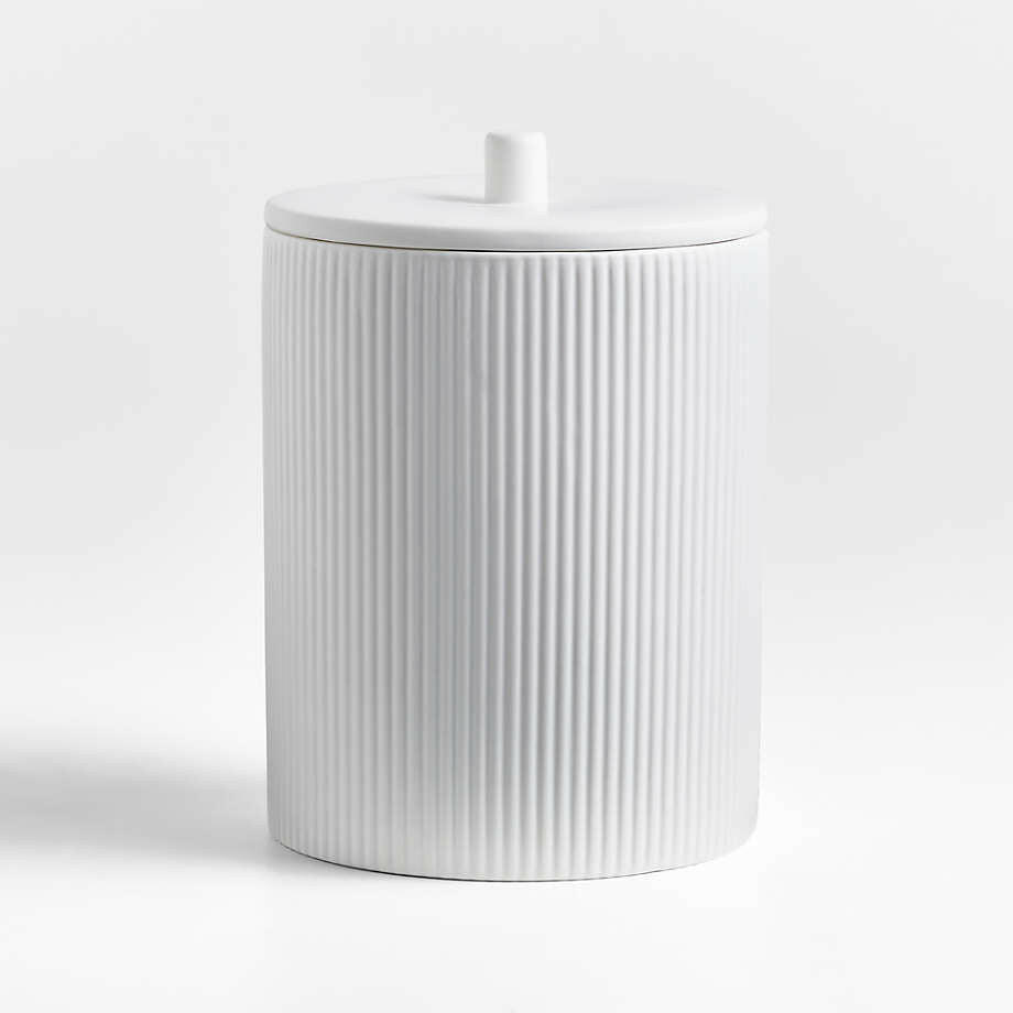 Inspired by our best-selling Hanno salt and pepper mill collection, this medium canister features the same tactile appeal and on-trend fluted detail. The white porcelain is textured with both horizontal and vertical ribbing for multidirectional linear interest, while a smooth lid topped with an understated knob provides an airtight seal. Contrasting with its matte exterior, the glossy glazed interior makes for easy cleanup. The subtly textured canister stores coffee beans, cocoa powder or other essential ingredients with a timeless balance of beauty and practicality.