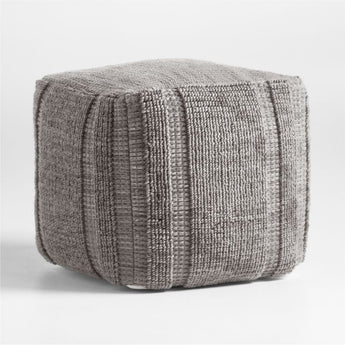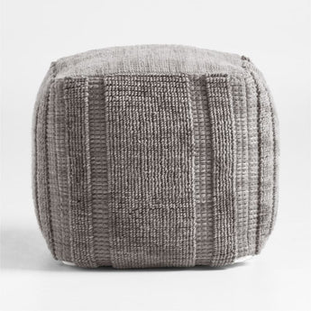 Handwoven of wool-blend yarn, our square pouf boasts rich textures and weaves that are irresistible to the touch. Seat, footrest and decorative object in one, the grey cube displays bands of raised texture on the sides. Poufs handily tuck under other furniture until needed, looking sculptural all the while, making them small-space essentials. Due to its handcrafted nature, each hand-fashioned pouf will be slightly unique.