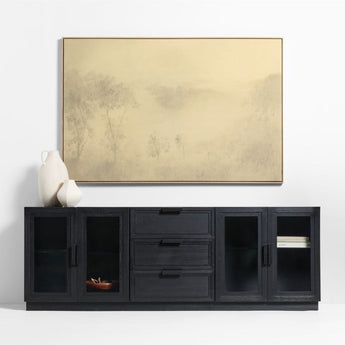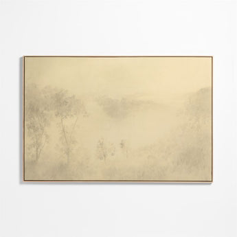 This dreamy river view is inspired by Texas Hill Country. Rendered in soft, sepia tones, the riverscape is cloaked in mist with the lacy foliage coming into view. Our giclee print on canvas captures the detail and nuance of the original painting and is presented in a natural-finished oak frame.