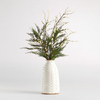 Gorgeous green with likelike detailing, this faux stem of cypress looks lovely arranged in a centerpiece or incorporated into a holiday floral arrangement. Or create a more modern and minimalist winter look by placing a single cypress stem in a tall clear or black vase. Handcrafted by skilled artisans, our exclusive artificial stem brings the natural beauty of the winter landscape indoorswithout the sap and shedding needles.
